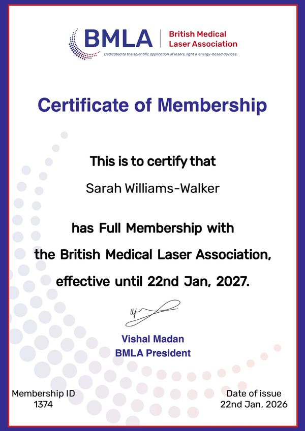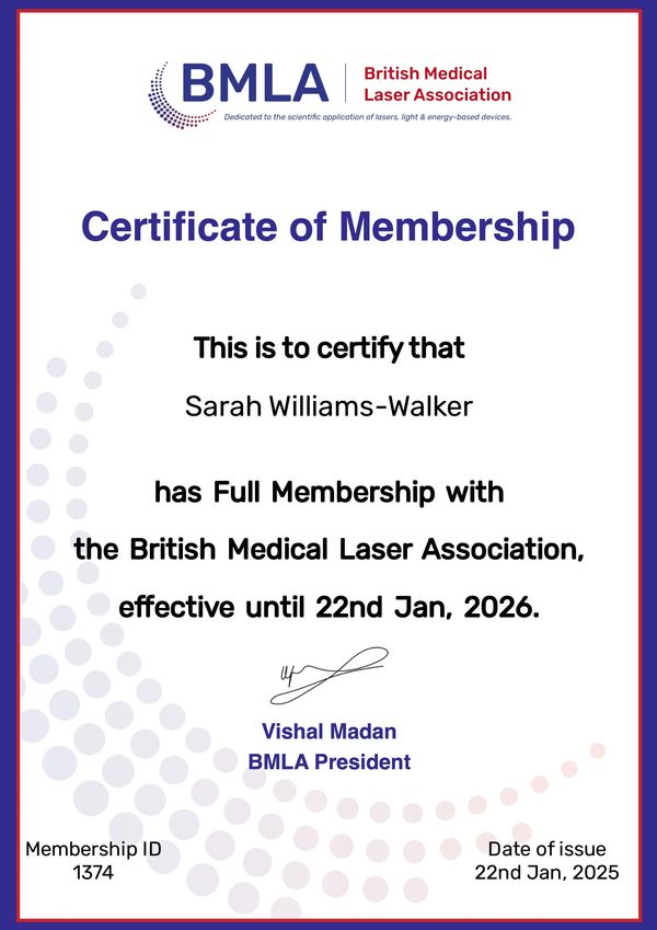 Sarah is also a laser clinic trainer for Fotona lasers and Sharplight IPL for the Formax and Beamax machines and is a Level 4 ITEC trainer for laser and light treatments. Sarah Works from three health and medical clinics, Brighton Laser and Skin Clinic, Hove Skin Clinic & Worthing Laser and Skin Clinic, which are all Care Quality Commission registered. Sarah manages all 3 clinic's laser departments and is the Laser Protection Supervisor for all 3 clinic's along with the clinical laser trainer. Sarah works along side Dr Russell Emerson, Lead Consultant Dermatologist & Dermatological Surgeon MRCP DM.